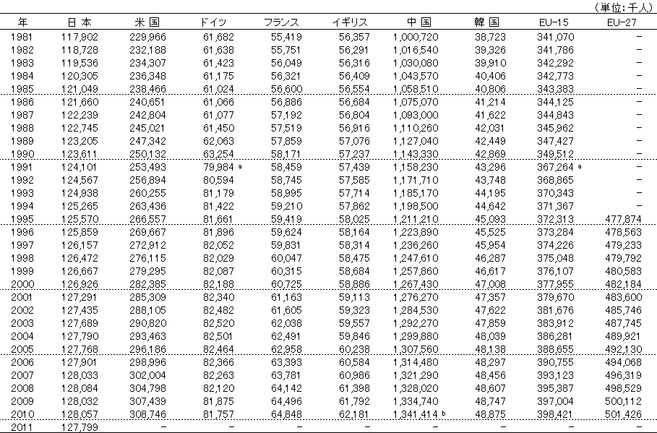 <日本>総務省統計局、「人口推計」年報(webサイト)