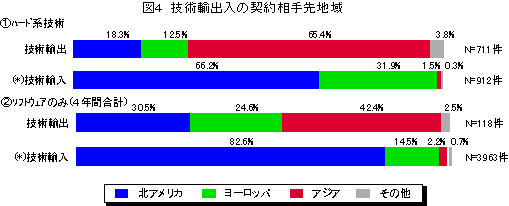 | ・ | 技術輸入においては、北アメリカの割合がハード系技術で66.2%、ソフトウェアで82.6%と最も高くなっている。 | ||