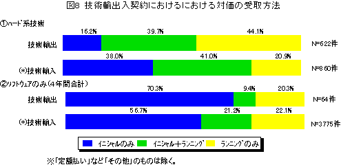 | ・ | ハード系技術については、技術輸出においては「ランニングロイヤルティのみ」の割合が高く、技術輸入においては「イニシャルペイメントのみ」の割合が高い。 | |