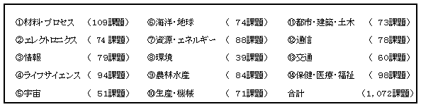 | 生活者ニーズへの対応 | : | 疾病の予防・克服、生活環境の向上、高齢者・身障者の支援、防災・安全の確保等 | |