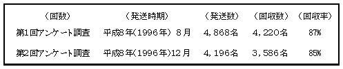 | ④調査期間 | : | 平成9年1月9日(発送)から平成9年2月10日(締切)までの間に実施した。 | |