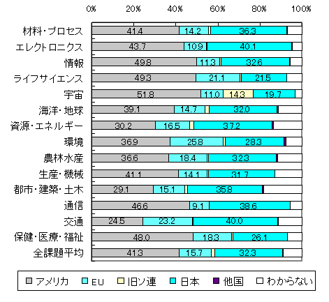 | ・ | 「アメリカ」の比率が特に高い分野:宇宙、ライフサイエンス、情報、通信、保健・医療・福祉 | |