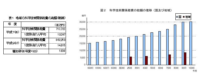 となった。これは、同期間における国の科学技術関係経費とほぼ同じ伸びである。また、地域の科学技術関係経費の国のそれに対する割合は、