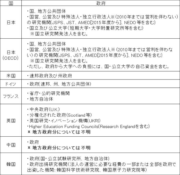 (8) 他国では、日本と同様の科学技術関係予算のデータが無いため、OECDの政府研究開発予算配分額(GBARD:Government Budget Allocations for R&D)を使用している。なお、OECD,“Main Science and Technology Indicators”のGBARDのデータには、日本の値も掲載されており、それらは日本政府が発表してきた科学技術関係予算(地域を含む最終予算)をもとにしているが、「Definition differs」(定義が異なる)という注記が付与されている。国ごとの詳細(OECD GBARD Sources and Methods Database)の日本の欄には「GBARD data reflects the S&T budget.」(GBARDは科学技術予算を反映している)との注記がある。