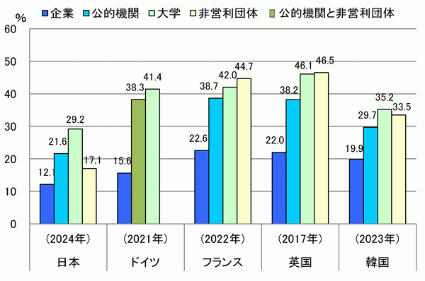3) ドイツは公的機関と非営利団体を合わせた値。大学は定義が異なる。