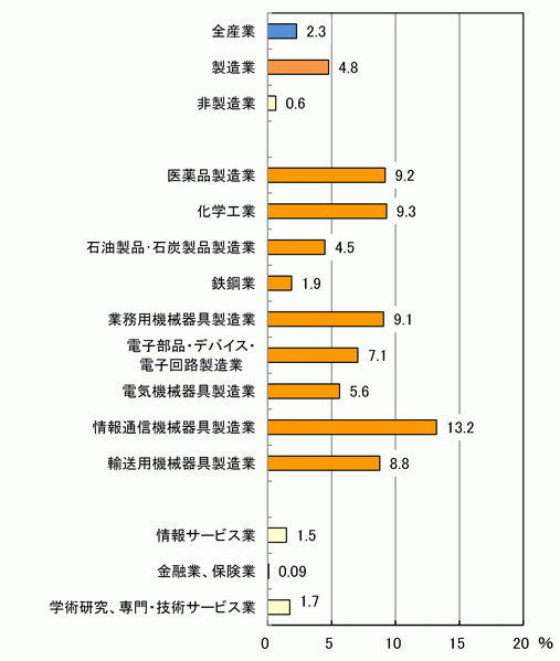 まず、非製造業(0.6%)よりも製造業(4.8%)において割合が高い。