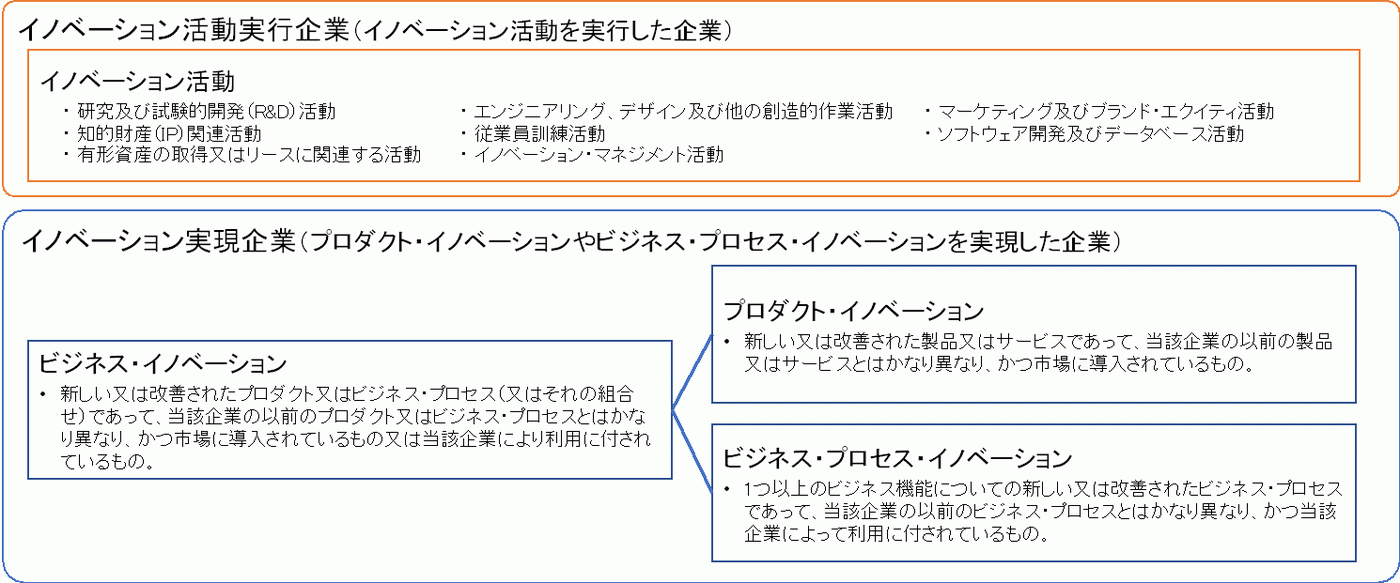 イノベーションの定義は、「オスロ・マニュアル(イノベーションに関するデータの収集、報告及び利用のためのガイドライン)」に基づいている。「オスロ・マニュアル」は、1992年に初版が公表され、その後、1997年、2005年にそれぞれ改訂版が公表され、2018年10月に公表された第4版が最新の「オスロ・マニュアル2018」である。