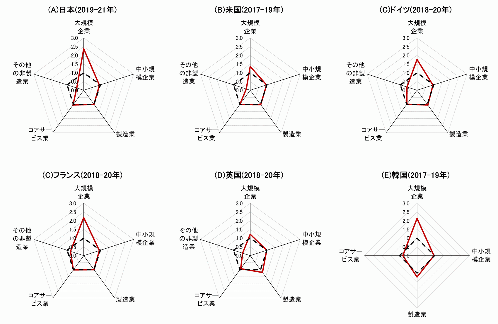 3) 韓国の「製造業」は2017-2019年、「コアサービス業」は2018-2020年を参照。「その他の非製造業」の値は記載されていなかった。